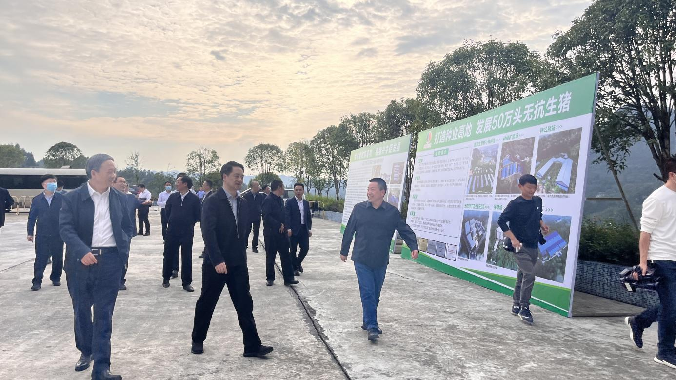 10月14日下午,重慶市副市長鄭向東、市水利局局長張學(xué)鋒,市農(nóng)業(yè)農(nóng)村委主任路偉,市交通局副局長李關(guān)壽,市鄉(xiāng)村振興局副局長王光榮一行,在黔江區(qū)委書記徐江、區(qū)委副書記、區(qū)長周恩海的陪同下蒞臨公司興隆灣種豬基地調(diào)研指導(dǎo)工作。